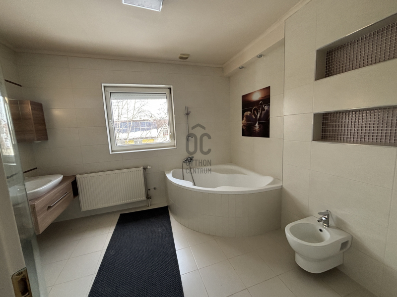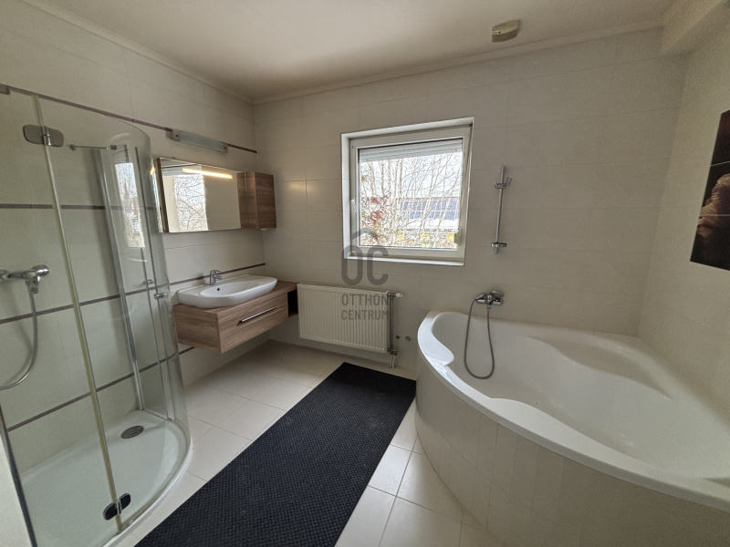 - Emeleten 3 db tágas, világos, erkélyes szoba, nagy fürdő és WC, gardrób szoba