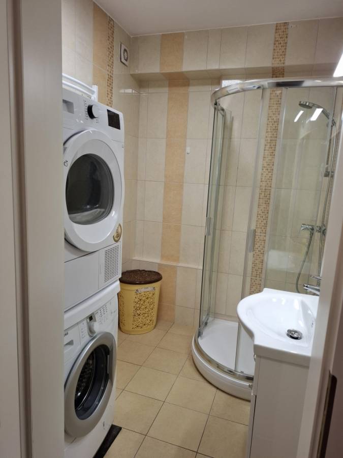 A lakás bútorozott, gépesített, mosogatógép is van. A szobák külön nyílnak, a nappaliban klíma van. Fürdőszoba zuhanyfülkés, wc külön van. Mért távfűtésű, alacsony rezsijű. Műanyag nyílászárók redőnnyel, szúnyoghálóval felszereltek. 4,5 nm-es erkély tartozik hozzá. Lift van. Közös költség 10.500 Ft. Dohányzás egyáltalán nem megengedett, állat nem hozható. Az épület szigetelt. A társasház udvarán fedett parkoló vehető igénybe, melynek díja 50 Euro/hó.