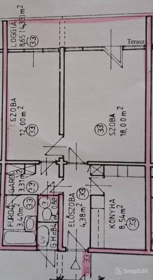 konyha-étkező 8.54 m²