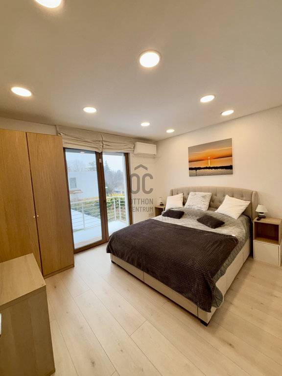 A ház modern, passzívház jellegű kivitelezése biztosítja a fenntarthatóságot és az alacsony energiafogyasztást, miközben a hőszivattyús fűtés,padlófűtés és a klímaberendezés gondoskodik a kellemes hőmérsékletről az év minden szakában.