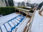 A telek 400 m2, míg a ház 140 m2, kiegészítve 50 m2 terasszal, medencével és külső tárolóval.