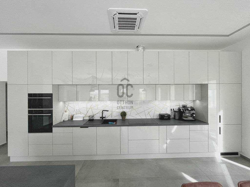 A konyhában beépített Whirlpool okos eszközökkel ( sütő, mikrohullámú sütő, indukciós főzőlap, páraelszívó, mosogatógép, hűtőszekrény és fagyasztó). Blancó mosogatócsap és szemetes. Valamint EVIDO ivóvíz tisztító rendszer, dupla karos csapteleppel.