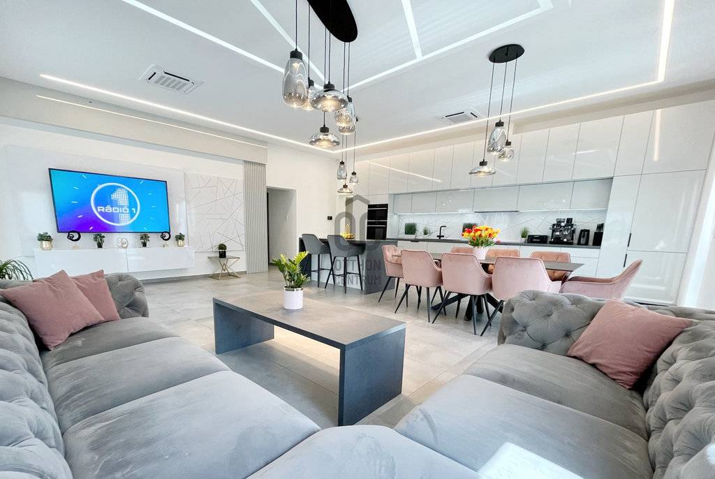 Prémium mennyezeti lámpák, led panelek, kiegészítő dizájn bútorok, képek és egyedi bútor betétek kerültek még elhelyezésre.