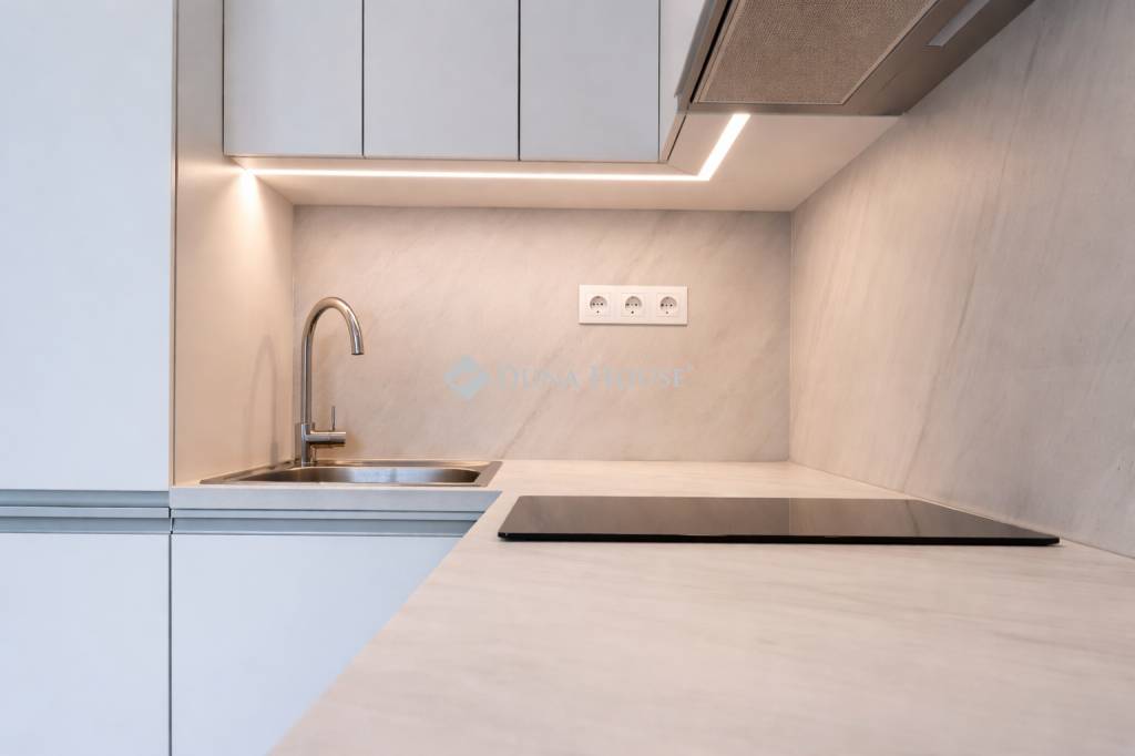 A lakás újszerű állapotú, minőségi burkolatokkal, teljesen gépesített konyhabútorral, elektromos redőnnyel, szúnyoghálóval és okosotthon-előkészítéssel rendelkezik a konyhabútor az ár részét képezi.
