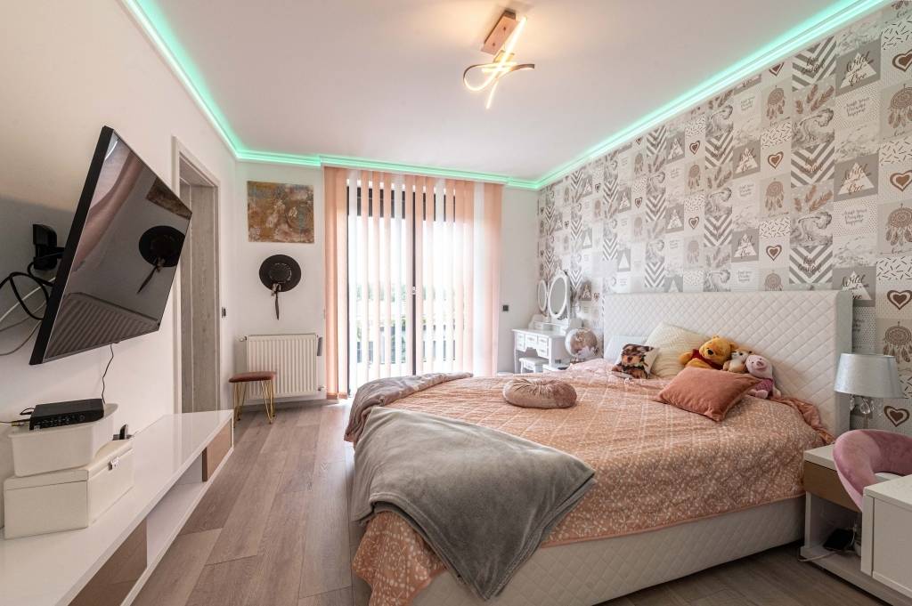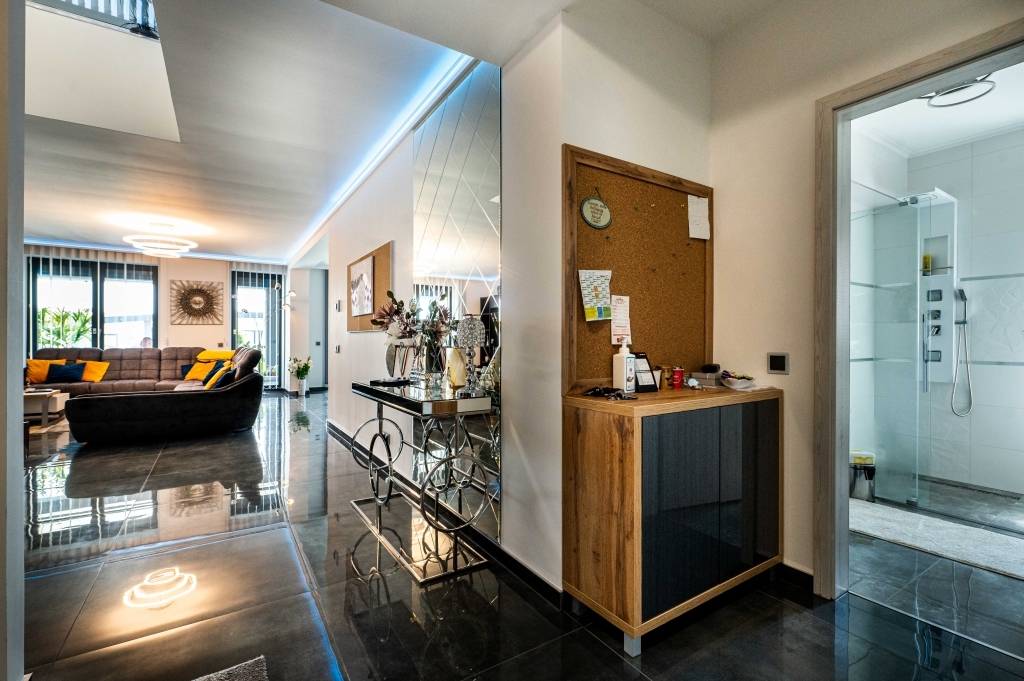 Egyedülálló luxusrezidencia Sóstón – felső kategóriás luxus otthon Nyíregyháza legnívósabb városrészének exkluzív határán, a természetvédelmi terület szomszédságában kínálunk megvételre egy valóban páratlan értéket képviselő ingatlant: egy 2022-ben épült, bruttó 294 m²-es luxusvillát, amely a modern építészet, a funkcionális téralkotás és a természetközeli nyugalom tökéletes szimbiózisa. A villa egy 941 m²-es, csodálatosan megtervezett és megépített kertben kapott helyet, maximális diszkréciót és életminőséget nyújtva azoknak, akik nem csupán otthont, hanem státuszt is választanak. Kiknek szól ez az ajánlat? Ez az ingatlan ideális választás lehet: