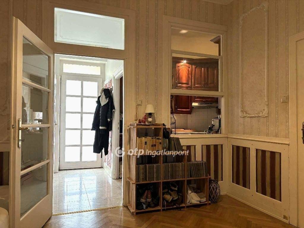 Eladó egy art deco épületben található 1. emeleti, 72 nm, 2 szoba hallos, nagypolgári lakás amit 3 éve a régi stílusjegyeket felidézve újítottak fel. Savmart üvegablakos eredeti nagy ajtók, felcsiszolt parketta bordűrrel, a kor hangulatát visszaadó tapéták, sárgaréz kilincsek, minőségi fa konyhabútor, mind a korabeli kifinomult eleganciát tükrözik vissza. Ugyanakkor a 3x32 Amperes villanyóra vagy a 3 rétegű üveggel felújított ablakok már a mai kor elvárásainak felelnek meg.