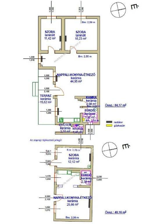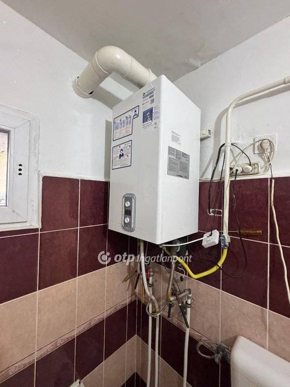Melegvíz: elöl kombi gázkazán, hátul villanybojler.