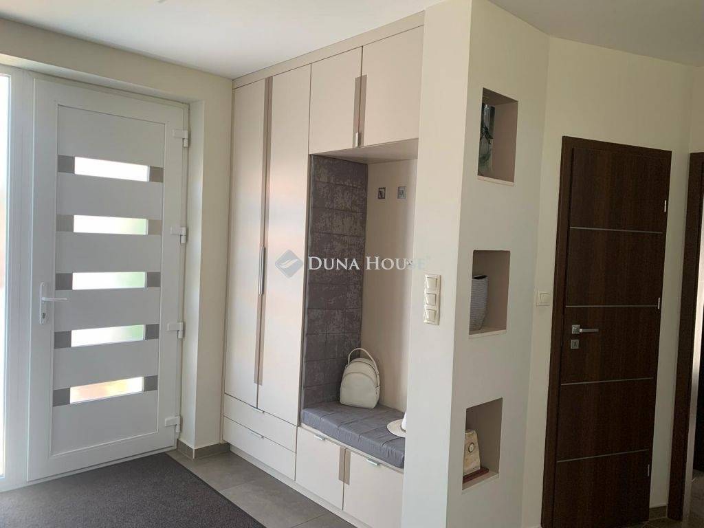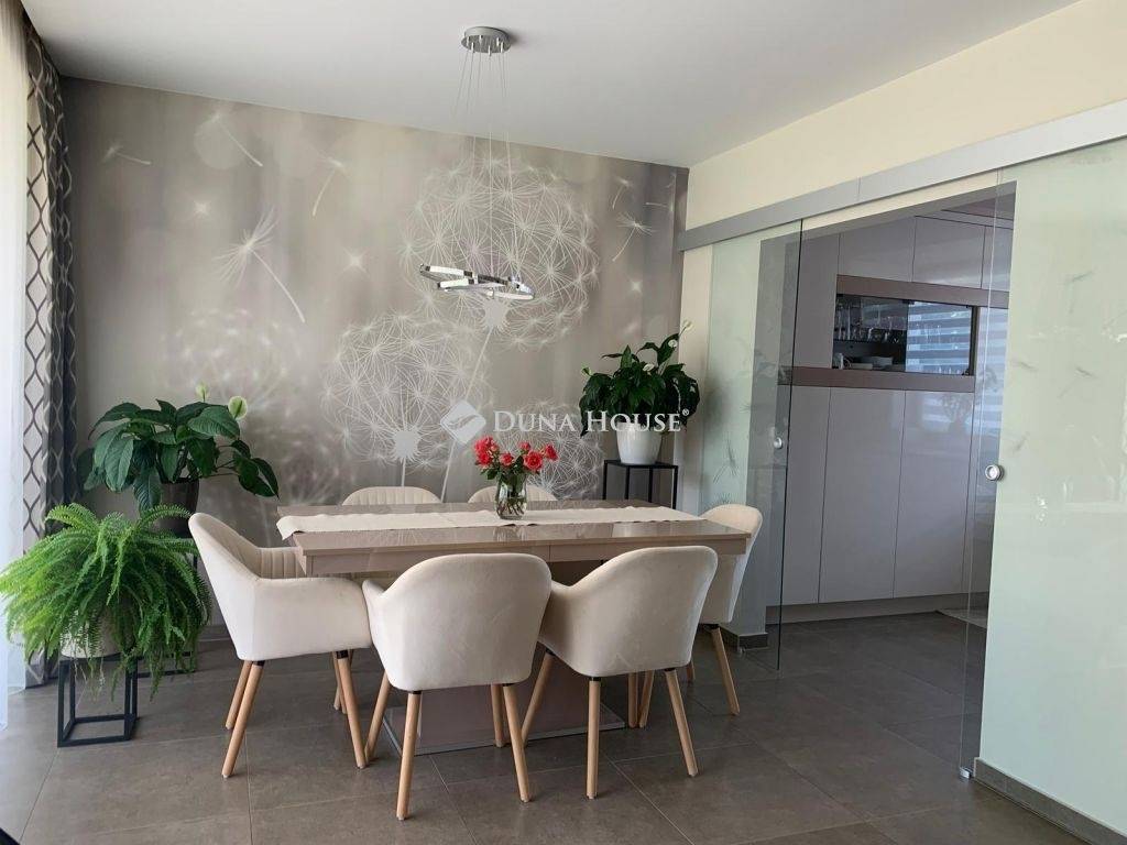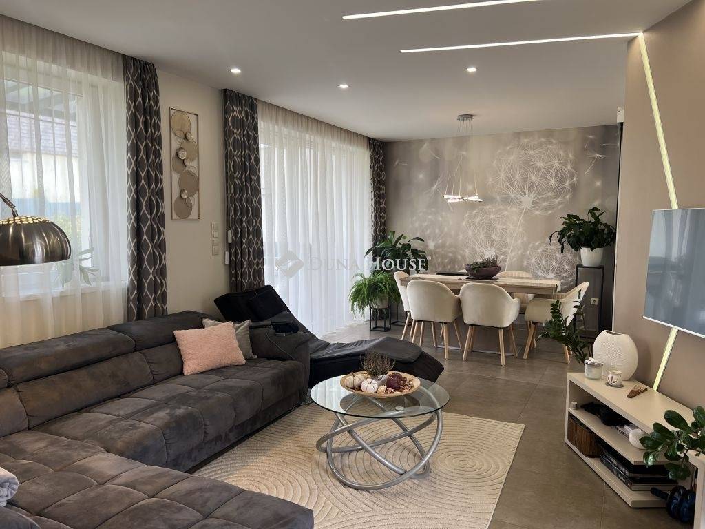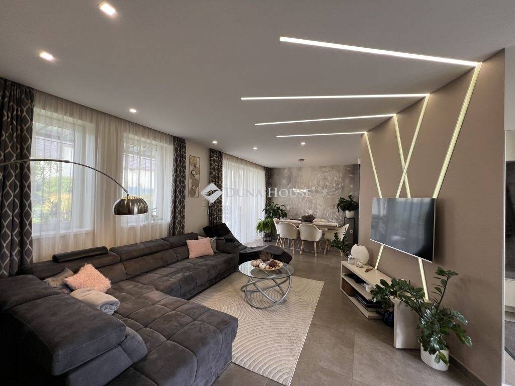 Két külön álló ház egy telken- modern családi ház Nyíregyháza - Hímes kertvárosban.Eladó egy 2018-ban épült, de szinte új állapotú, minimalista stílusú, kiváló elrendezésű, lakberendező által megtervezett ingatlan. Egy 620 m²-es, parkosított telken két különálló ház található Nyíregyháza legkedveltebb kertvárosi részén a Hímes kertvárosban.A nagyobb, kétszintes családi házban (140 m²) a földszinten a szülői hálószoba saját gardróbbal és kádas, zuhanykabinos fürdőszobával rendelkezik, ahonnan közvetlenül nyílik a mosókonyha. Ezen a szinten található a vendég WC, egy tágas nappali, az étkező és egy modern konyha is, amely egy toló ajtóval és egy dupla szárnyú üveg tolóajtóval választható el a nappalitól és az étkezőtől. A nappaliból egy 30 m2-es fedett teraszra tudunk kilépni a toló ajtón. A nappaliból induló lebegő lépcső központi eleme a háznak, és elegánsan vezet fel az emeletre. A felső szint teljesen lezárható egy toló ajtóval igény esetén. Ez a megoldás a hangszigetelés miatt is praktikus vagy a fűthető terek leválasztását is szolgálhatja. Ott három napfényes hálószoba, egy közös társalgó, és egy épített zuhanykabinos fürdőszoba nyújt kellemes életteret.A ház K-NY-i fekvésű, padlófűtéses, elektromos redőnyökkel és szúnyoghálókkal, ledes lámpákkal ellátott. Porotherm 38-as téglából épült, 12 cm hőszigeteléssel, így energetikailag kimagaslóan hatékony. Ezt támogatja az 5 kW-os napelem rendszer is. Monolit vasbeton födémmel készült mind két szint mennyezete, és a ház lapos tetős. Minden dokumentáció rendelkezésre áll, ami bemutatja az egész építési folyamatot. Fotók, számlák, tervek bizonyítják, hogy a ház tökéletes minőségben, kíváló szakemberek által készült.A kisebb, földszintes hátsó (63 m²-es) házba belépve, egy amerikai konyhás nappali-étkezőben találjuk magunkat. Innen nyílik egy modern, épített zuhanykabinos fürdőszoba, és egy közlekedő, amely egy kisebb és egy nagyobb szobához vezet. Az épület alatt egy kisebb méretű pince található, mellette terasz, fedett kocsibeálló és tároló helyiség biztosítja a mindennapi kényelmet. A fűtést elektromos norvégpanelek, és egy kandalló biztosítja. Ez a ház teljesen fel lett újítva a telek vásárlásakor. A teljes vízvezeték hálózat, és a villamos hálózat korszerűsítésre került, új elosztótábla lett beépítve, ablak csere történt, és kívül le lett szigetelve.5 KW-os napelem rendszer ( a 10 éves szaldó elszámolási lehetőséggel) 3×50 Amper elektromos hálózat, bármilyen háztartási vagy vállalkozási igényhez is ideálisLégkondicionáló mindkét házbanElektromos kapuAutomata programozható öntözőrendszerMindkét ház modern LED világítással felszerelveGrillezési és bográcsozási lehetőség a kertbenGondozott, parkosított, mindig virágzó növényekkel beültetett kertA Hímes kertváros, Nyíregyháza egyik legkedveltebb, és legbiztonságosabb része. Bevásárlási lehetőségek, gyógyszertár, iskola, óvoda 10 perces séta távolságra, Sóstó pedig csupán 6 km-re található. Belvárosi iskolák, óvodák és gimnáziumok könnyen elérhetők, mert innen a reggeli csúcsidőben is kiváló a közlekedés. Ez az ingatlan tökéletes választás nagyobb családoknak, többgenerációs együttéléshez vagy befektetésnek, hiszen a kisebb ház külön lakrészként kiadható, vendégházként vagy vállalkozásra is hasznosítható. A beépített bútorok és gépek az ár részét képezik, a többi bútor is maradhat, de megegyezés tárgya. Önnek már nem kell bajlódnia egy építkezéssel, ide csak be kell költöznie! Amennyiben az ingatlan elnyerte tetszését kérem keressen elérhetőségeinken!Vevőink számára szolgáltatásaink díjmentesek!