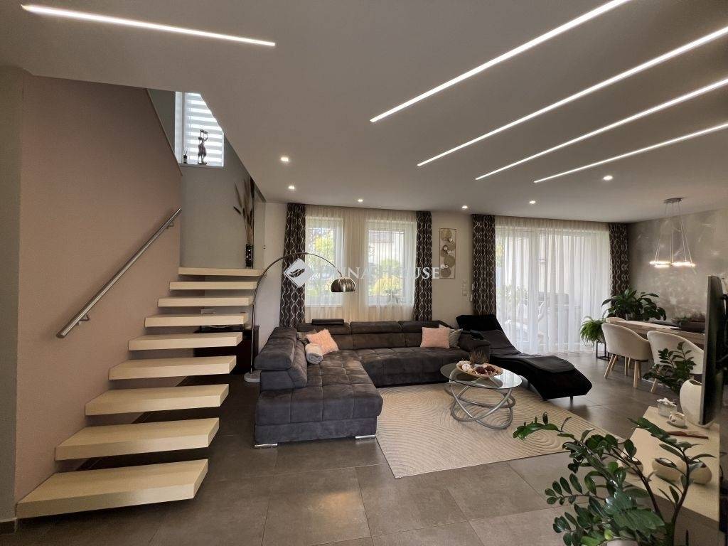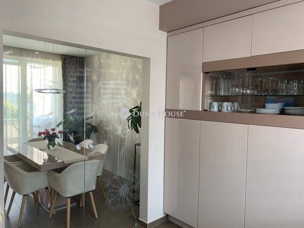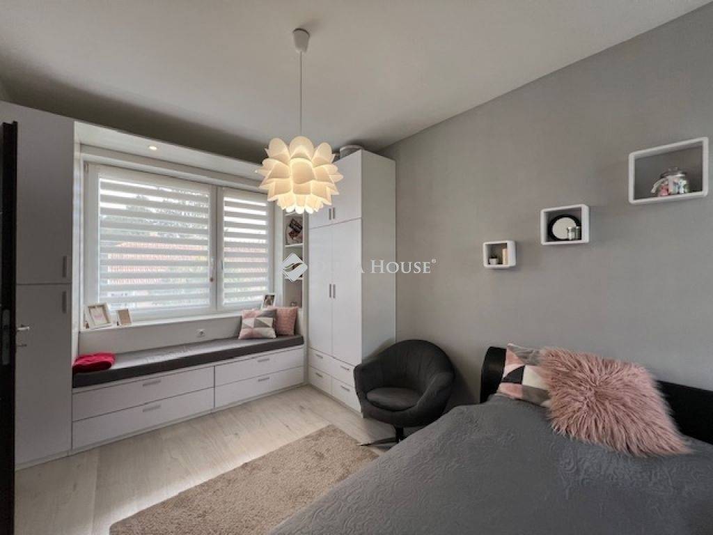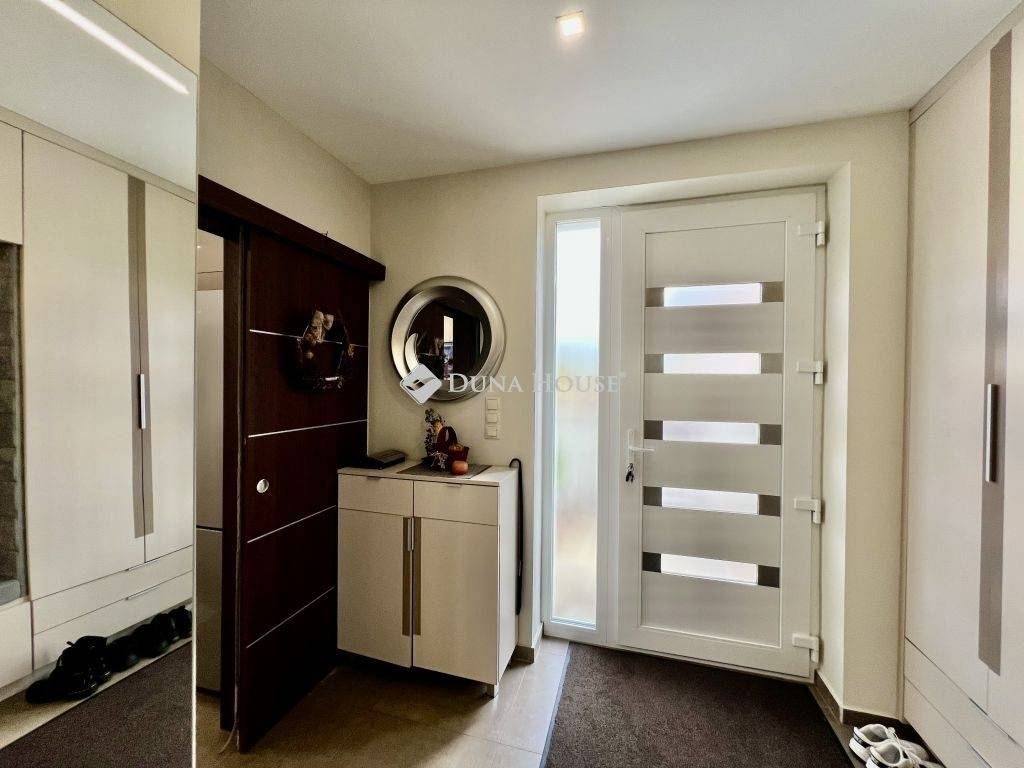 Két külön álló ház egy telken- modern családi ház Nyíregyháza - Hímes kertvárosban.Eladó egy 2018-ban épült, de szinte új állapotú, minimalista stílusú, kiváló elrendezésű, lakberendező által megtervezett ingatlan. Egy 620 m²-es, parkosított telken két különálló ház található Nyíregyháza legkedveltebb kertvárosi részén a Hímes kertvárosban.A nagyobb, kétszintes családi házban (140 m²) a földszinten a szülői hálószoba saját gardróbbal és kádas, zuhanykabinos fürdőszobával rendelkezik, ahonnan közvetlenül nyílik a mosókonyha. Ezen a szinten található a vendég WC, egy tágas nappali, az étkező és egy modern konyha is, amely egy toló ajtóval és egy dupla szárnyú üveg tolóajtóval választható el a nappalitól és az étkezőtől. A nappaliból egy 30 m2-es fedett teraszra tudunk kilépni a toló ajtón. A nappaliból induló lebegő lépcső központi eleme a háznak, és elegánsan vezet fel az emeletre. A felső szint teljesen lezárható egy toló ajtóval igény esetén. Ez a megoldás a hangszigetelés miatt is praktikus vagy a fűthető terek leválasztását is szolgálhatja. Ott három napfényes hálószoba, egy közös társalgó, és egy épített zuhanykabinos fürdőszoba nyújt kellemes életteret.A ház K-NY-i fekvésű, padlófűtéses, elektromos redőnyökkel és szúnyoghálókkal, ledes lámpákkal ellátott. Porotherm 38-as téglából épült, 12 cm hőszigeteléssel, így energetikailag kimagaslóan hatékony. Ezt támogatja az 5 kW-os napelem rendszer is. Monolit vasbeton födémmel készült mind két szint mennyezete, és a ház lapos tetős. Minden dokumentáció rendelkezésre áll, ami bemutatja az egész építési folyamatot. Fotók, számlák, tervek bizonyítják, hogy a ház tökéletes minőségben, kíváló szakemberek által készült.A kisebb, földszintes hátsó (63 m²-es) házba belépve, egy amerikai konyhás nappali-étkezőben találjuk magunkat. Innen nyílik egy modern, épített zuhanykabinos fürdőszoba, és egy közlekedő, amely egy kisebb és egy nagyobb szobához vezet. Az épület alatt egy kisebb méretű pince található, mellette terasz, fedett kocsibeálló és tároló helyiség biztosítja a mindennapi kényelmet. A fűtést elektromos norvégpanelek, és egy kandalló biztosítja. Ez a ház teljesen fel lett újítva a telek vásárlásakor. A teljes vízvezeték hálózat, és a villamos hálózat korszerűsítésre került, új elosztótábla lett beépítve, ablak csere történt, és kívül le lett szigetelve.5 KW-os napelem rendszer ( a 10 éves szaldó elszámolási lehetőséggel) 3×50 Amper elektromos hálózat, bármilyen háztartási vagy vállalkozási igényhez is ideálisLégkondicionáló mindkét házbanElektromos kapuAutomata programozható öntözőrendszerMindkét ház modern LED világítással felszerelveGrillezési és bográcsozási lehetőség a kertbenGondozott, parkosított, mindig virágzó növényekkel beültetett kertA Hímes kertváros, Nyíregyháza egyik legkedveltebb, és legbiztonságosabb része. Bevásárlási lehetőségek, gyógyszertár, iskola, óvoda 10 perces séta távolságra, Sóstó pedig csupán 6 km-re található. Belvárosi iskolák, óvodák és gimnáziumok könnyen elérhetők, mert innen a reggeli csúcsidőben is kiváló a közlekedés. Ez az ingatlan tökéletes választás nagyobb családoknak, többgenerációs együttéléshez vagy befektetésnek, hiszen a kisebb ház külön lakrészként kiadható, vendégházként vagy vállalkozásra is hasznosítható. A beépített bútorok és gépek az ár részét képezik, a többi bútor is maradhat, de megegyezés tárgya. Önnek már nem kell bajlódnia egy építkezéssel, ide csak be kell költöznie! Amennyiben az ingatlan elnyerte tetszését kérem keressen elérhetőségeinken!Vevőink számára szolgáltatásaink díjmentesek!