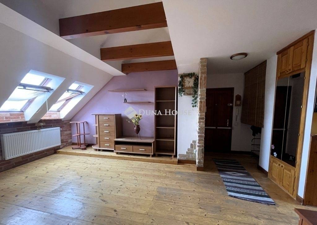 Kecskeméten a Széchenyivárosban, - Dombhoz közel eladó egy nagyon szuper kis lakás, fiatalos hangulatú, egyedi kialakítású! A Lukács György utcai zárt udvaros kis lakópark egyik gyöngyszemét kínálom eladásra! Az eredetileg panel szerkezetű épülettetőterét az 1995-ös kivitelezés alkalmával teljesen beépítették, tégla válaszfalakkal, kiváló hőszigeteléssel további, -egyedi hangulatú, korszerű, kis rezsivel fenntartható lakásokat alakítottak ki! Ez a lakás nappali + 2 külön bejáratú hálószobával rendelkezik. A lakás netto 61 nm, a brutto alapterület pedig 70 nm. Ezen felül még a padlás is hozzá tartozik, ami szintén burkolattal van ellátva, (hajópadló) kiválóan alkalmas további tárolásra. További jellemzők: - saját gázkazán, minimális fűtésköltség- kádas, kádas fürdőszoba, törölköző szárító radiátor- Velux ablakok, fényzáró rolókkal- az egyik szobában függőleges síkú bukó-nyíló fa ablak, redőnnyel- a nappaliban kis költséggel felújítható hajópadló, amely egyedi, meleg hangulatot az a maga természetességével a lakásnak- sok beépített szekrény, polcok, tárolók kialakítva a tetősík alatt- klimatizáltA lakáshoz a földszinten egy saját 1 nm-es külön tároló is tartozik. A társasházban igényes, jó a lakóközösség. Szép, toszta a lépcsőház. Ahátsó bejáraton keresztül egy teljesen zárt, szépen parkosított udvarra jutunk ki, ahol a gyerekeknek biztonságos játszótér van kialakítva, a parkban több pad is el van helyezve! Emiatt kisgyerekes családoknak ez a lakás ilyen szempontból is kiváló választás lehet! Kiválóan frekventált hely! A közelben óvoda, iskola, buszmegálló van! Bevásárlási lehetőségként pár percre a van a LIDL, vagy a Domb áruház! Hívjon, ne hagyja ki! Kis költséggel a saját ízlésére alakíthatja ezt a szuper kis lakást! Befektetésnek is kiváló!