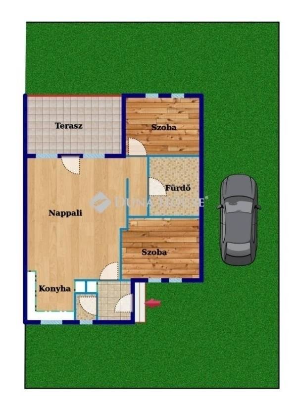 - 60,2 m²-es lakótér, nappali + 2 szoba