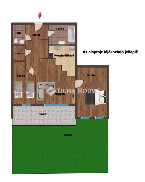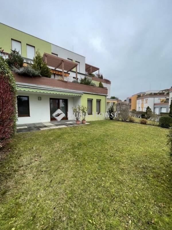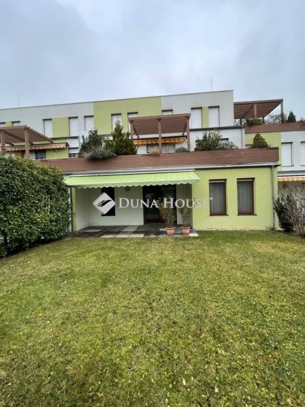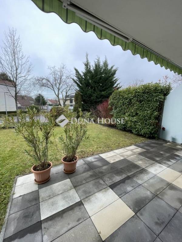 A nappaliból közvetlenül elérhető a gondozott, saját használatú kertkapcsolat, amely kellemes pihenőteret biztosít.