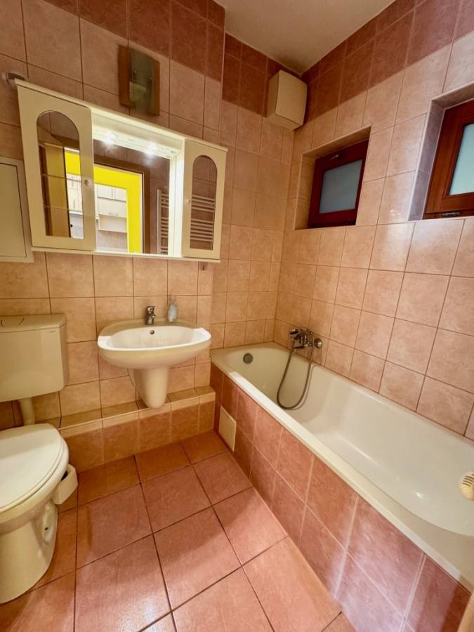 - Ablakos, fürdőkádas fürdőszoba, mennyezetig csempézve