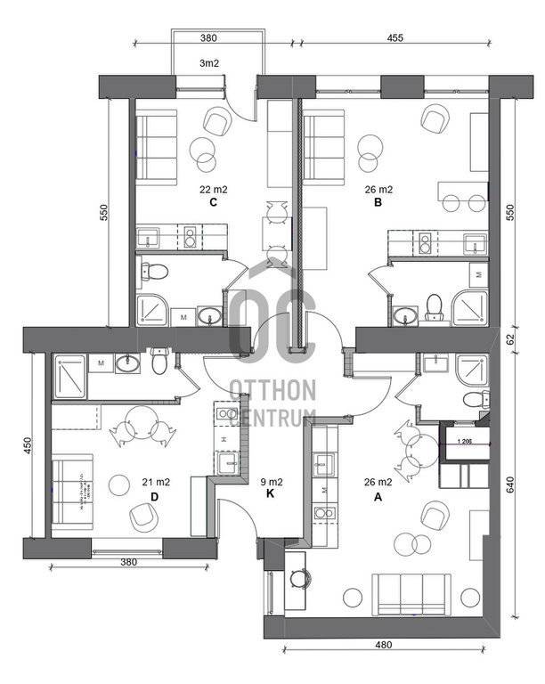 A lakás az alaprajzon „D” jelű.