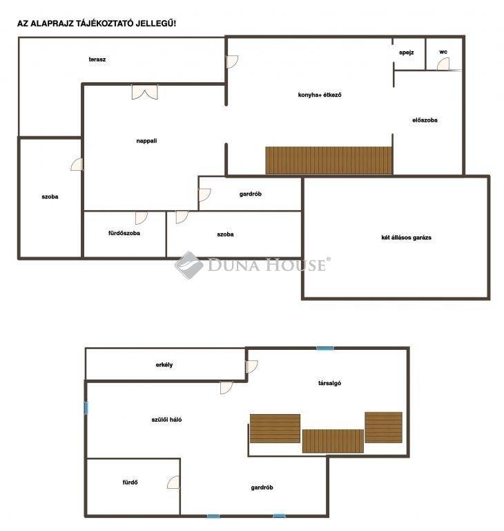 Minőségi kivitelezés, ízléses dizájn jellemzi a tágas terekkel ellátott ingatlant. Az alsó szinten előszoba- ahonnan a pincelejáró nyílik, valamint egy vendég WC illetve a nappali, konyha, étkező 55 négyzetméteren helyezkedik el, ahonnan nyílik 3 szoba, melyből egy jelenleg gardróbként funkcionál, valamint egy fürdőszoba. A kényelmes, prémium lépcsőn jutunk fel az emeletre, ahol egy társalgó valamint egy szülői háló- gardrób- fürdőszoba(nincs befejezve) kapott helyet. Praktikusan a szülői hálóhoz kapcsolódik egy 7 négyzetméteres erkély is.
