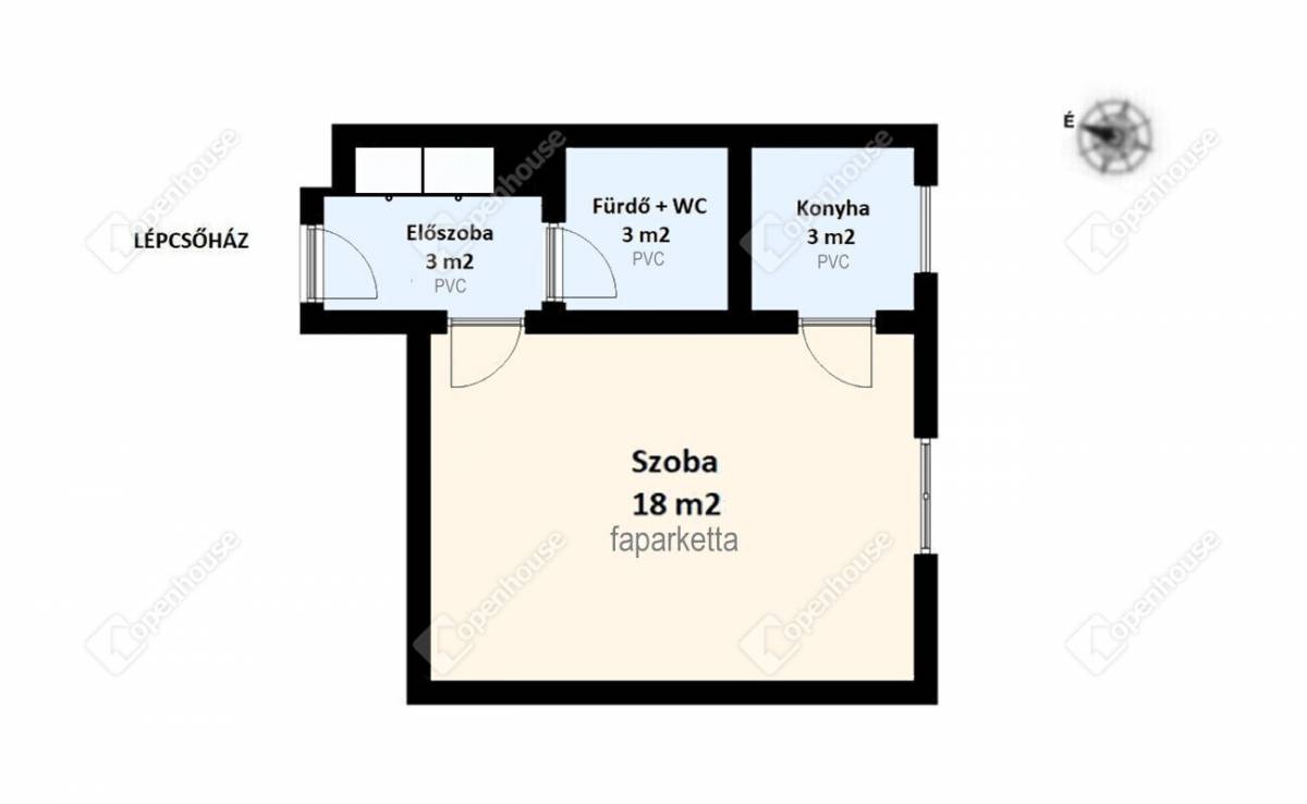 - faparketta burkolat a szobában, a többi helyiség PVC-vel és alatta kőjárólappal burkoltak