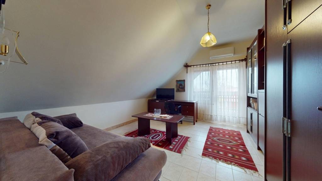 A családi ház 1989-ben épült szilikát és tégla falazattal, Észak-déli fekvésű, így egész nap világos és napfényes. Az ingatlan elrendezése praktikus és tágas: az emeleten 3 külön nyíló szoba, fürdőszoba, külön WC, gardrób, előtér, erkély, az alsó szinten egy 46 nm-es hatalmas nappali /mely két szobára is osztható/, konyha étkezővel, előtér, fürdőszoba, külön WC, kamra, erkély biztosítja a kényelmes családi életet.