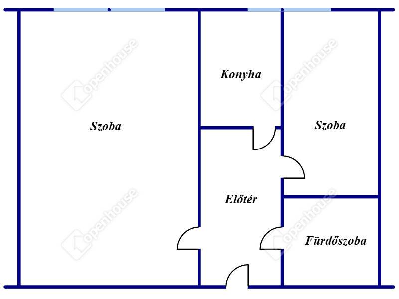 A kis lakásba belépve egy tágas előtér fogad, innen nyílnak az egész-, és a fél szoba, a konyha és a fürdő.