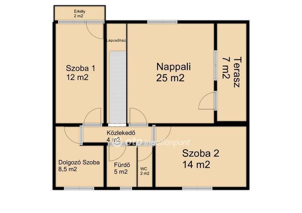 Kialakítás: 2 szinten 3 plusz egy fél szoba, amely tágas életteret biztosít családok számára is.