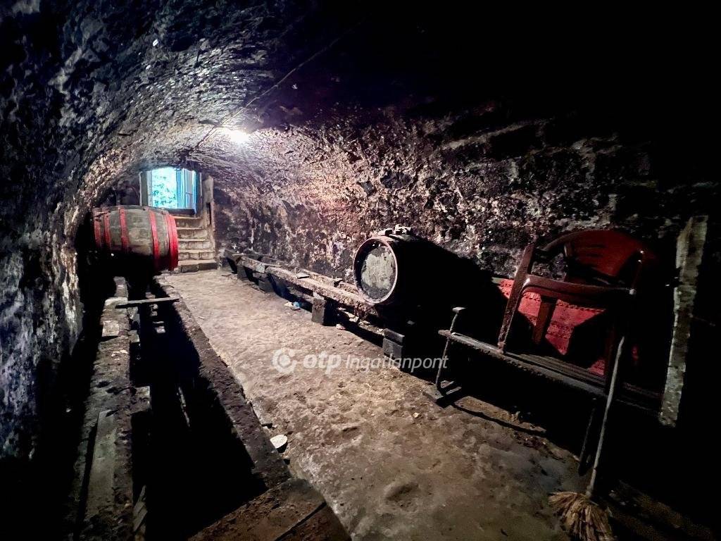 Ebből az épületből nyílik a három szakaszból álló, autentikus borospince.