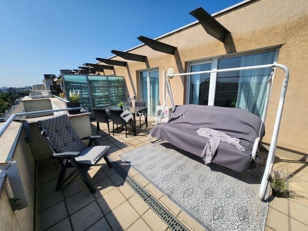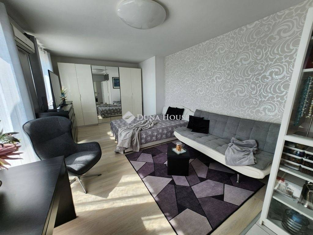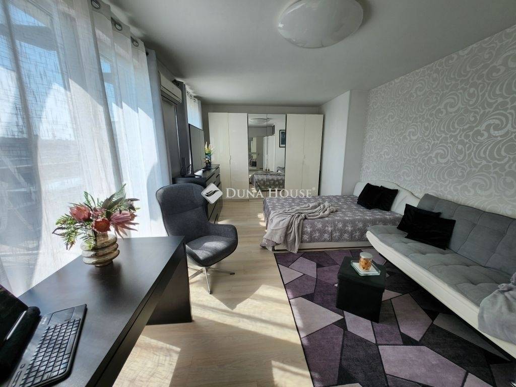 Modern penthouse lakás a Central Parkban 180°-os panorámával és álomterasszal!Budapest XIII. kerületének szívében, a Lehel úton, kínálunk megvételre egy különleges, 8. emeleti, keleti tájolású penthouse lakást, amely egyszerre nyújt modern városi életérzést és nyugodt otthont.Az ingatlan bruttó 72 m²-es (nettó 39 m² lakótér + 33 m² terasz), tulajdoni lapon 55 m².A tágas, világos nappaliból és a teraszról lenyűgöző, 180°-os panoráma tárul elénk, amely minden nap új élményt kínál legyen szó reggeli kávéról a napfelkeltében, vagy egy esti borozásról a város fényei alatt.Ami igazán különlegessé teszi:- Jelenleg egy légterű, de könnyedén leválasztható egy külön hálórész, így a lakás még praktikusabbá és otthonosabbá tehető.- A kialakítási lehetőségek bemutatására 3D látványtervek is rendelkezésre állnak, hogy a leendő tulajdonos könnyen elképzelhesse saját álomotthonát.- Penthouse jelleg, nagyméretű terasz, páratlan térélmény.- Modern elrendezés, napfényes terek, alacsony rezsiköltség (B energetikai besorolás).- Kiváló közlekedés: busz- és villamosmegállók közvetlenül az épület előtt.A lakás ideális választás mindazoknak, akik:- egyediséget és panorámát keresnek,- első otthonukat vásárolnák akár 3%-os kedvezményes hitellel,- vagy olyan befektetést keresnek, amely könnyen bérbe adható a lokáció és a különleges adottságok miatt.Az ingatlan a képeken látható bútorokkal együtt eladó, melyek értéke 5 M Ft, így azonnal költözhető.Érdeklődés esetén keressen bizalommal, akár hétvégén is! Ne maradjon le erről az igazán ritka lehetőségről!