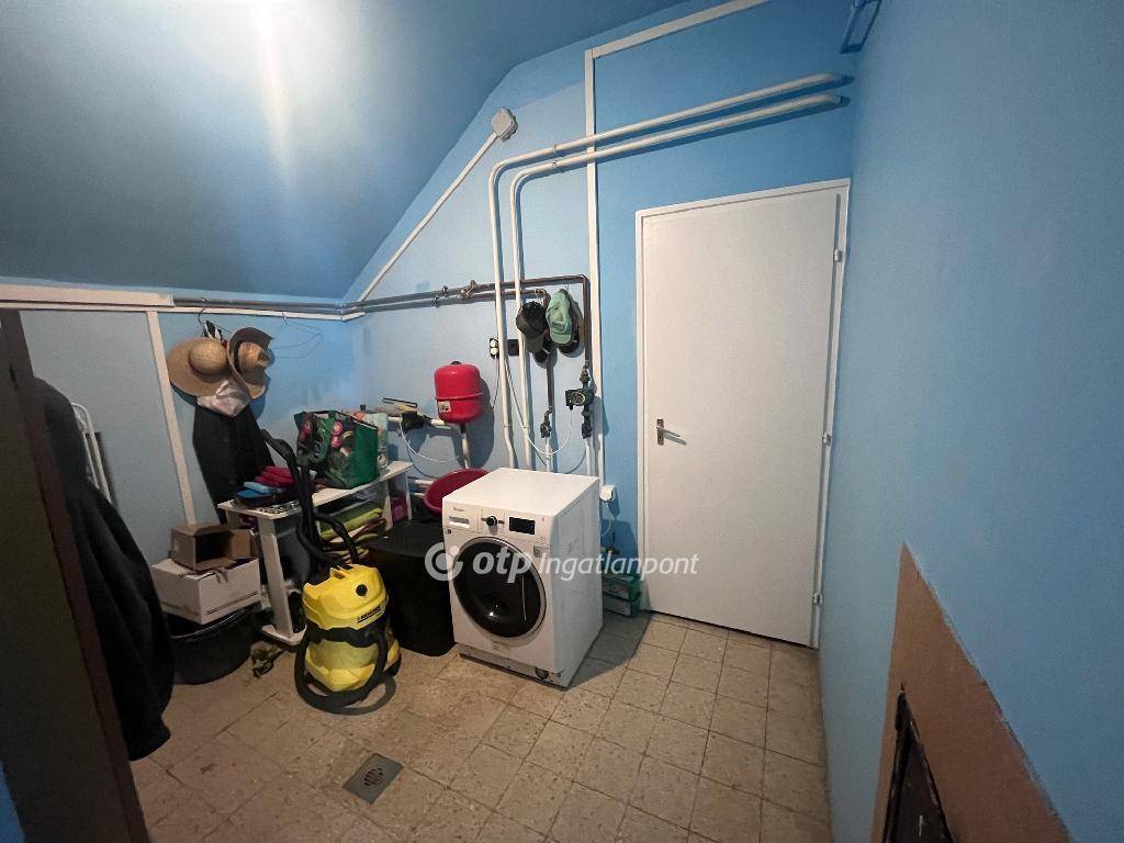 Az alsó szinten amerikai konyhás nappali búboskemencével, saját fürdős vendégszoba (minősített magánszállás), dolgozószoba, második konyha, kamra, mosókonyha, pince és garázs található. Az emeleten galériás előtér, nappali, két hálószoba, fürdőszoba, gardrób és erkély kapott helyet. A fűtés vegyestüzelésű és kondenzációs gázkazánnal is megoldható.