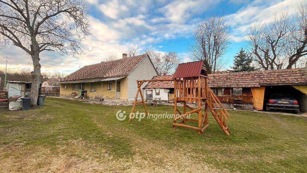 Bakonybánk településen, a Bakony keleti lábánál, a Bakonyalja és a Kisalföld határán, vidéki hangulatú, csendes, madárcsicsergős környezetben eladó egy 90 m2-es, 4 szobás családi ház, 4255 m2-es telken.