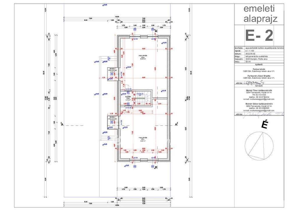 Emelet (2 db x 50,68 m2): Jelenleg szerkezetkész, szabadon alakítható terek! Tervek szerint mindkettő 2 szobás, erkélyes lakásnak készül.