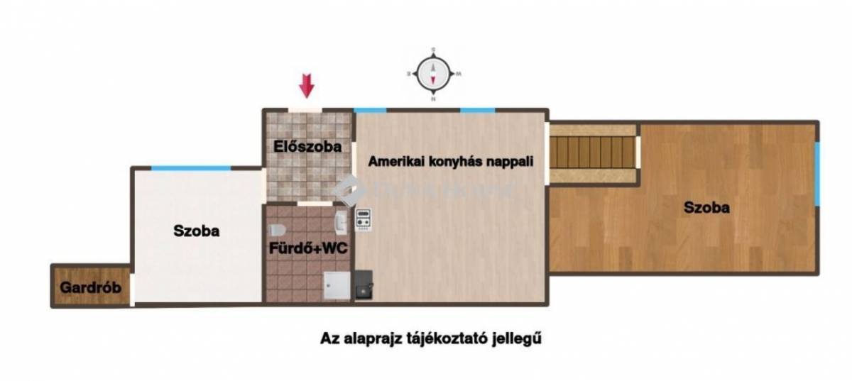 - 1 félszoba, amelyből külön gardróbszoba nyílik