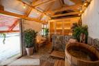 A fedett terasz és az udvar adottságai kiváló alapot adnak egy szaunarész vagy wellness-jellegű pihenőtér kialakításához, ami apartmanos hasznosítás esetén komoly értéknövelő tényező.