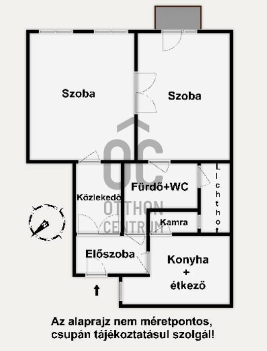 A lakás dél-keleti tájolású, az egyik szobából erkéllyel néz az utcára.