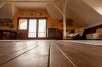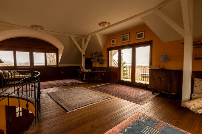- az emeleten a ferde tetősík egyedi hangulata mellett jól használható a térdfalaknak köszönhetően
