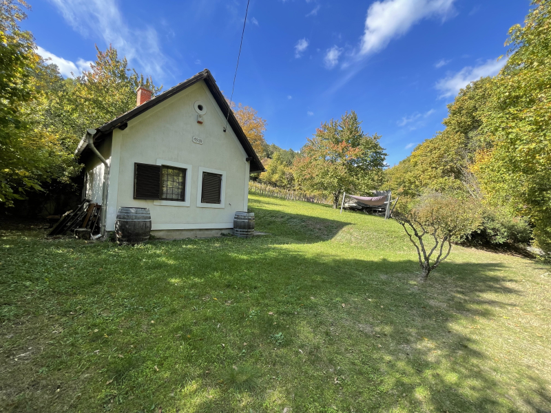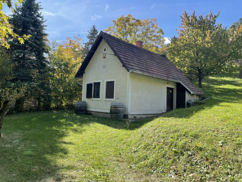 PÉCSELYEN GYÖNYÖRŰ ERDŐS KÖRNYEZETBEN BŐVÍTHETŐ PINCE-PRÉSHÁZ, NYARALÓ ELADÓ