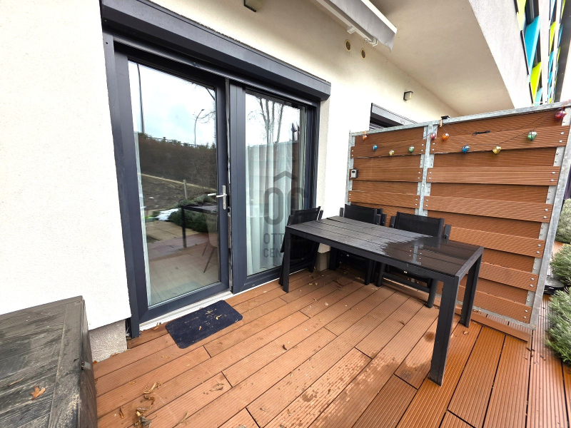 A lakás nettó 32nm, amihez egy déli tájolású, +8nm-es terasz tartozik, amely motoros napernyővel védett.