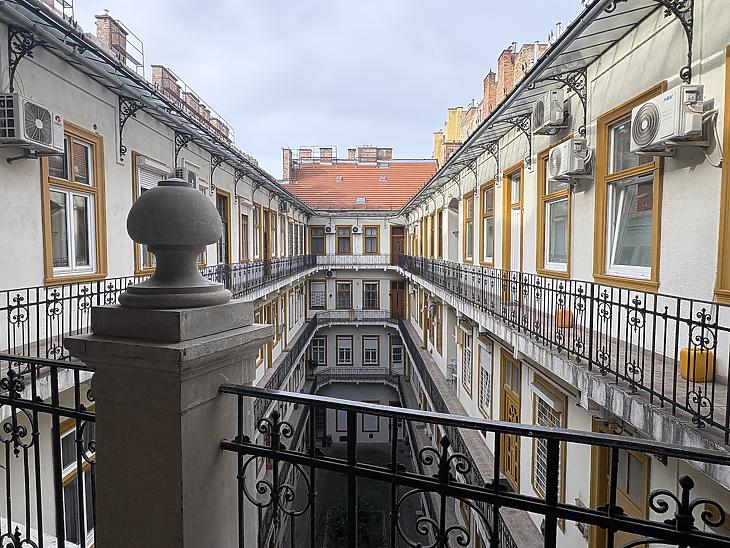 Az ingatlan a társasház 3. emeletén található, udvari nézetének köszönhetően csendes és nyugodt életteret biztosít a belvárosi környezet ellenére. Az épület külső homlokzata jó állapotú, rendezett benyomást kelt.