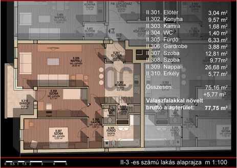 - 78 nm – tágas, reprezentatív terek
