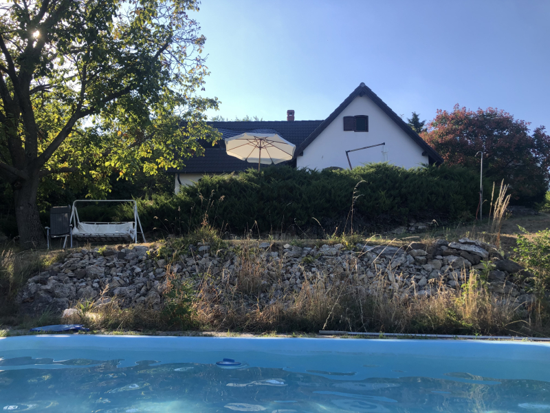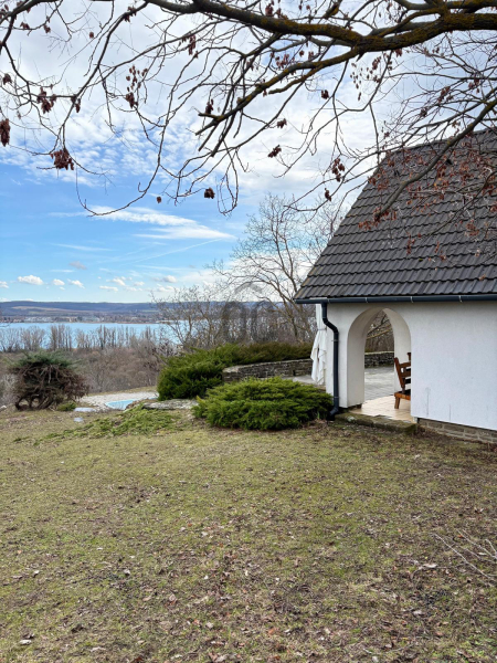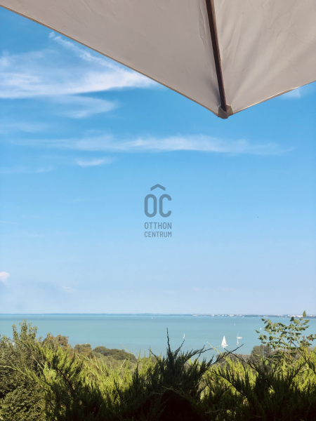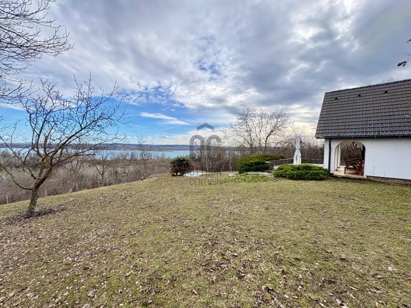 A 3309 m²-es, nyeles teleken elhelyezkedő 110 m²-es ház teljes elvonulást biztosít: a környező zöld, erdős, be nem építhető terület garantálja, hogy a Balaton látványa és a nyugalom örökre megmarad. A házra senki nem lát rá, az intimitás abszolút. A teraszról, a kertből és a medence mellől feltáruló panoráma minden napszakban lenyűgöző – vitorlásokkal tarkított víztükör, természetes zöld környezet, zavartalan csend.