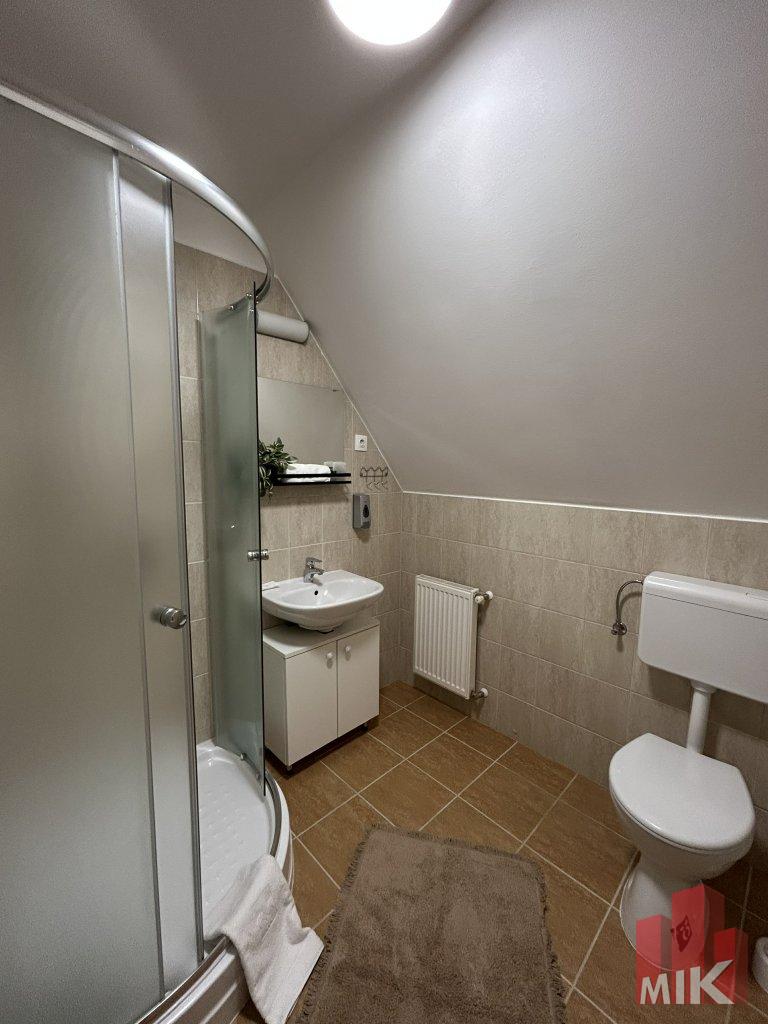 A vendégház háromszintes kialakítású: földszinti, tetőtéri és beépített padlástéri résszel rendelkezik, mindhárom szint vendégek fogadására, elszállásolására alkalmas. Az épületben összesen 4 szoba található, mindegyikhez saját fürdőszoba tartozik, a teljes kapacitás 13 fő elszállásolására alkalmas. Emellett rendelkezésre áll olyan szoba és mellékhelyiség is, amely akadálymentes kialakítású, így a mozgáskorlátozott vendégek számára is biztosított a kényelmes használat. A kialakítás kényelmes, jól elkülönülő életteret biztosít, így az ingatlan egyszerre szolgálhat vállalkozási és lakhatási célokat, de akár teljes egészében magánhasználatra is ideális.