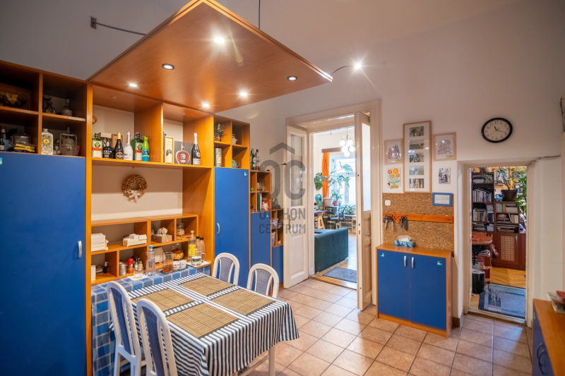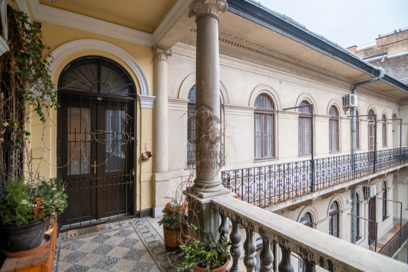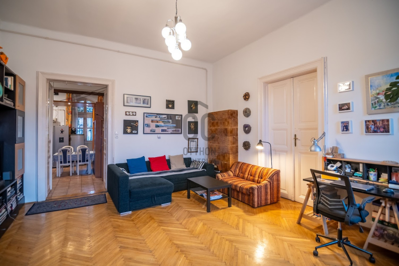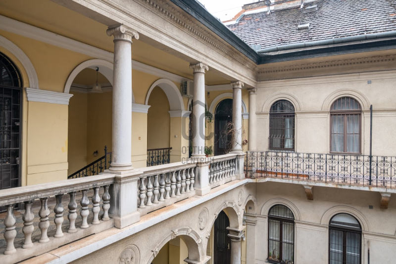 A VI. kerület Oktogon közvetlen szomszédságában, csendes egyirányú mellékutcában eladó ez a nagypolgári stílusjegyekkel bíró családi otthon, egy autó számára fix parkolási lehetőséggel!