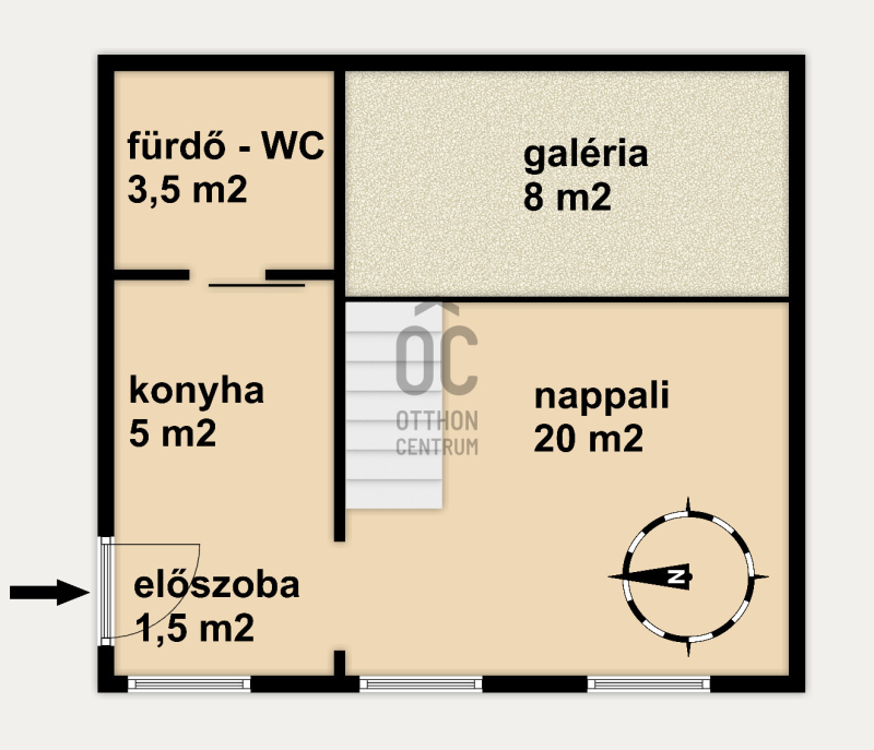 - 30 m2 + 8 m2 galéria, belmagasság 3,6 m