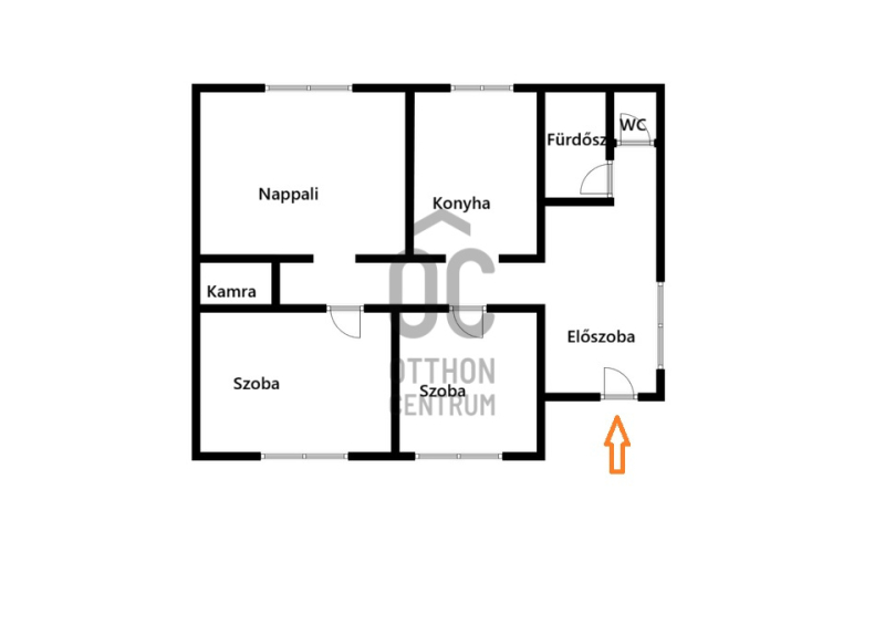 - alapterülete 86 nm, mely nappali, 2 tágas hálószoba, konyha, kamra, fürdőszoba, előszoba, külön WC, elosztású