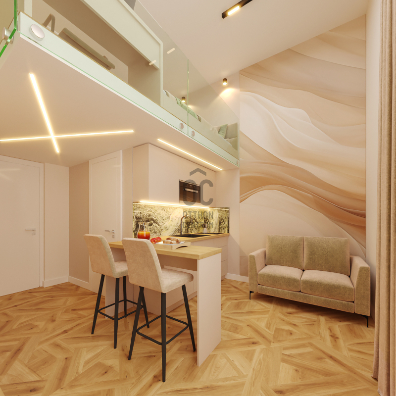 A lakások magas műszaki tartalommal, modern, fiatalos dizájnnal kerülnek átadásra. Az ár részét képezik a hűtő-fűtő klímák, a konyhabútor beépített gépészettel (főzőlap, sütő, mikró, elszívó), az összes lámpatest és rejtett hangulatvilágítás.