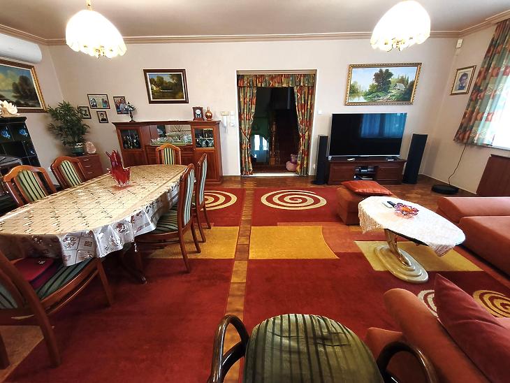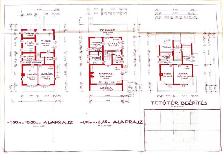140m2-es, tetőtérbeépítési lehetőséggel, valamint egy 90m2-es pincével.