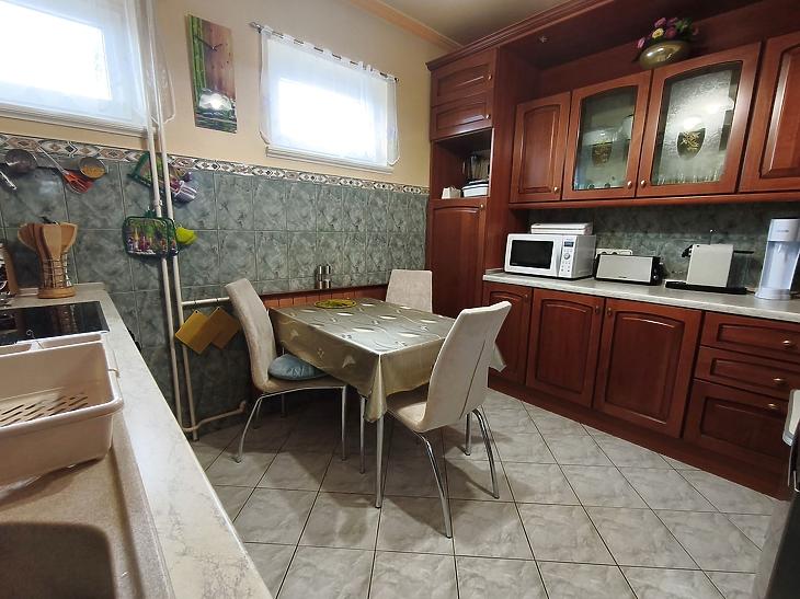 1984-ben B38-as téglából épült 10cm szigeteléssel rendelkező 97m2 alapterületű szinteltolásos családi ház egy 988 m2-es telken.