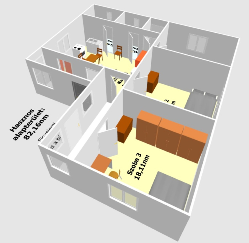 - 3 szoba,