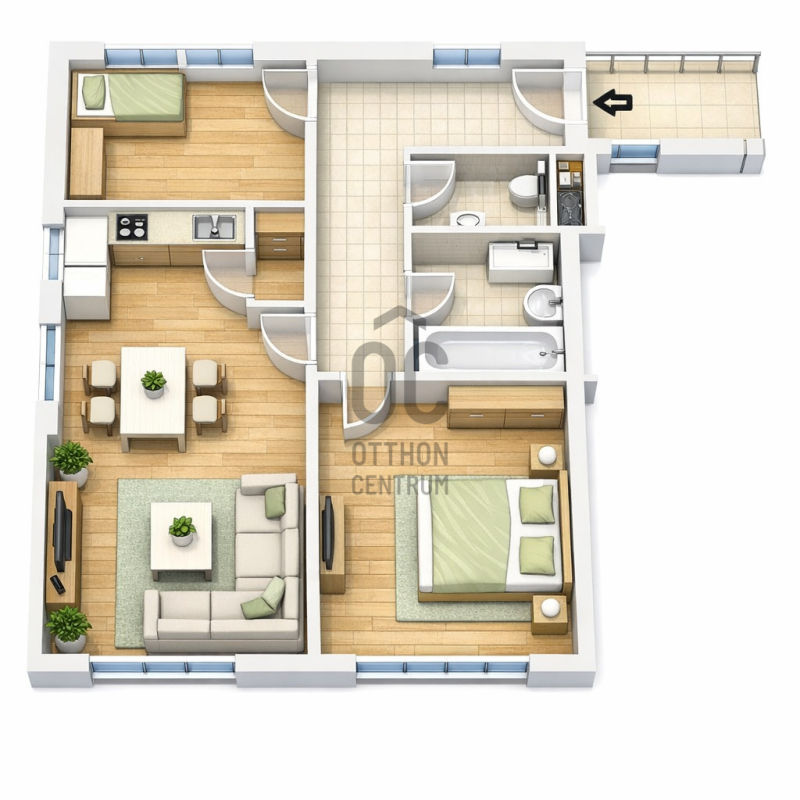 • 2 külön nyíló szoba