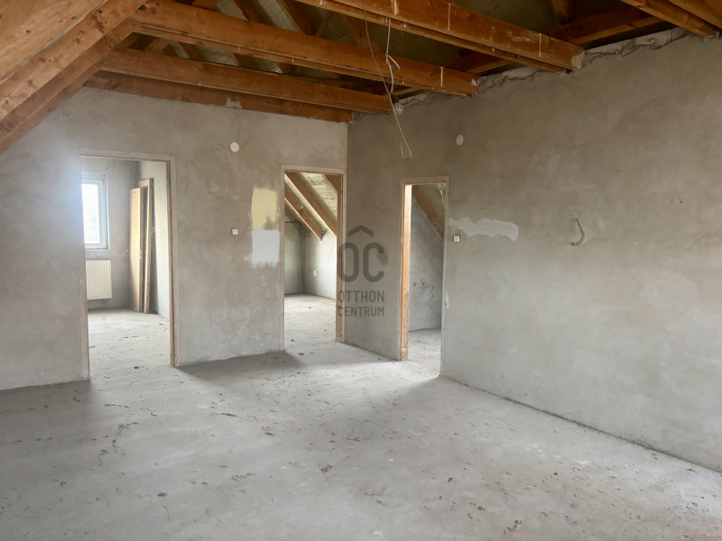 - Külső lépcsőn jutunk fel a szerkezetkész tetőtérbe, amelynek a befejezésével egy külön lakrész alakítható ki.