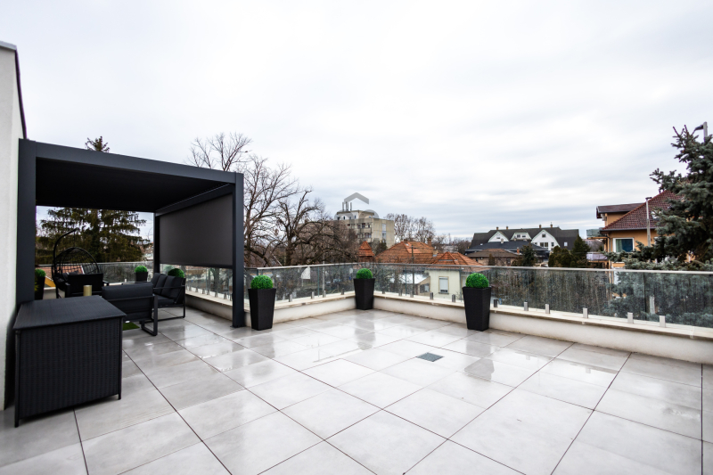 -panorámás tetőterasz (90m2)