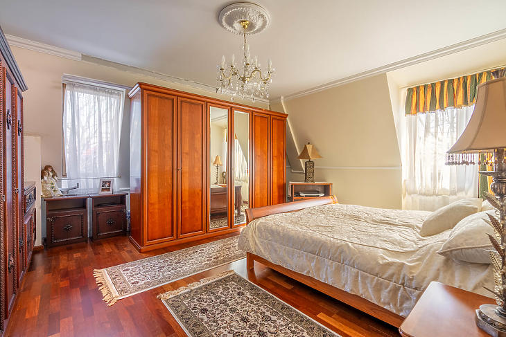 A ház öt hálószobával és négy fürdőszobával rendelkezik.