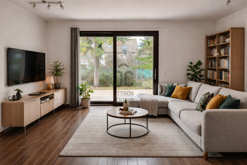 A világos, amerikai konyhás nappali közvetlen kapcsolattal rendelkezik a 20 m²-es déli fekvésű terasszal és a kertre néz, így a pihenés vagy vendéglátás is könnyedén megoldható. A földszinten szintén található két hálószoba, fürdőszoba és egy praktikus éléskamra.